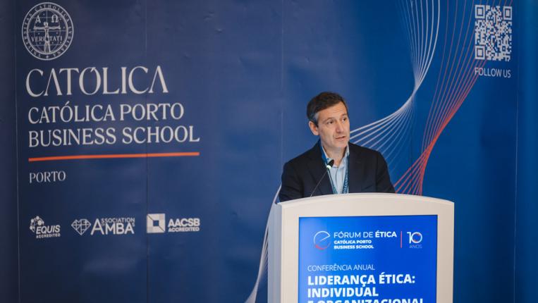 Na sessão de abertura, o diretor da Católica Porto Business School, João Pinto, sublinhou a importância da ética como pilar estruturante da formação de gestores e líderes, destacando o compromisso da Escola na criação de uma cultura organizacional baseada na responsabilidade, transparência e consciência social.
