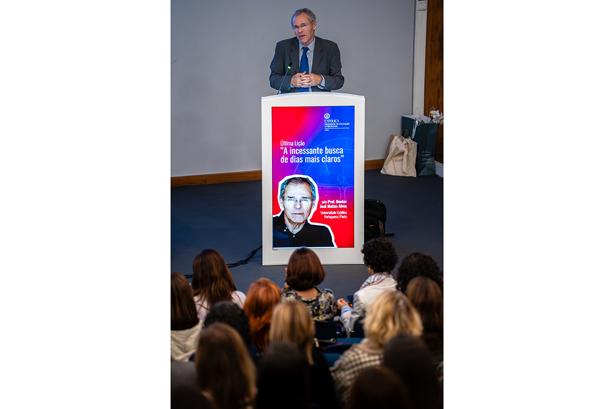 Num auditório cheio de colegas, antigos estudantes, familiares e amigos, José Matias Alves terminou formalmente, no dia 3 de novembro de 2025, a sua carreira docente na Faculdade de Educação e Psicologia da Universidade Católica Portuguesa (FEP-UCP), no Porto.