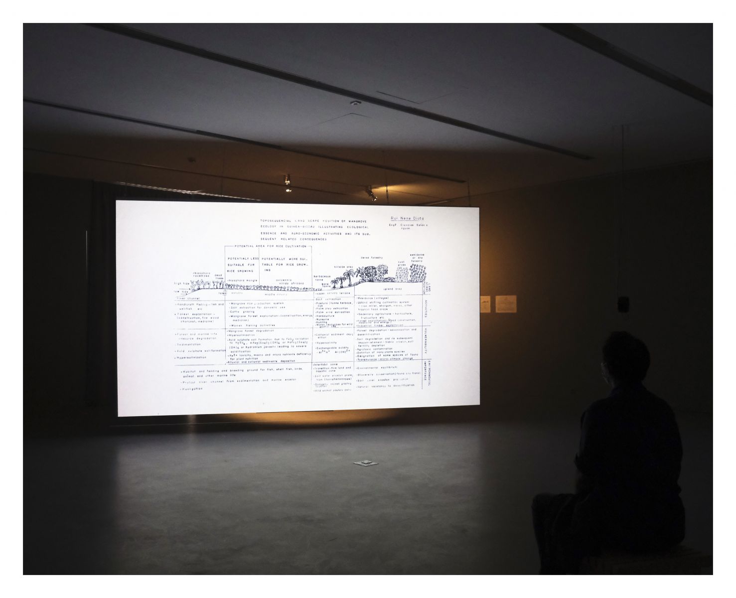 A nossa conversa parte de uma pesquisa profunda sobre o sistema militante educativo desenvolvido pelo Partido Africano para a Independência da Guiné-Bissau e Cabo Verde (PAIGC) durante o processo de libertação, os onze anos de luta armada (1963-74) contra a ocupação colonial portuguesa e o interesse recorrente no imaginário da tarafe – a palavra criola para mangue. O mangue é uma arquitetura natural aérea, onde a memória ainda flutua através das redes das raízes e o respiro da maré oxigena um conhecimento de resistência numa condição de resistência pelo conhecimento. Aqui entramos num imaginário entrelaçado de várias dimensões convergentes: a epistemologia do rizoma, conceitos de educação militante e política, os ensinamentos de habitantes da comunidade Malafo, arquivos nómadas e noções agronómicas/botânicas de engenharia de mangais.
