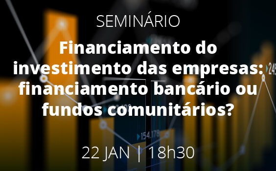 A Católica Porto Business School tem o prazer de o convidar a participar no Seminário "Financiamento do investimento das empresas: financiamento bancário ou fundos comunitários?", que terá lugar no próximo dia 22 de janeiro, pelas 18h30.